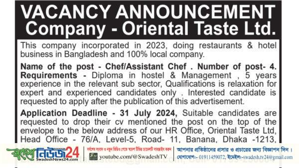 চাকরির খবরসর্বশেষস্বদেশ এক্সুসিভVacancy Announcement, Company- Oriental Taste Ltd. এডমিন, সম্পাদনায়- সাইমুর রহমান2 years ago2 years ago01 mins Vacancy Announcement, Company- Oriental Taste Ltd. Post navigation Previous: ৭৬ বছরের ইতিহাসে প্রথম, সারা দেশে টানা তাপপ্রবাহের রেকর্ডNext: ওমরাহ পালনে সস্ত্রীক সৌদি যাচ্ছেন মির্জা ফখরুল Leave a ReplyYour email address will not be published. Required fields are marked *Comment * Name Email Website
